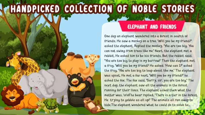 Dalam dunia yang serba pantas ini, seringkali kita mencari inspirasi dan pengajaran melalui kisah-kisah bermoral. Aplikasi "Moral Stories: Short Stories in English with Moral" hadir sebagai teman setia anda, menawarkan koleksi cerita-cerita pendek yang memukau dengan pengajaran hidup yang mendalam. Lupakan carian internet yang tidak berkesudahan; kini anda boleh menyelami dunia kisah penuh pengembaraan ini, bahkan tanpa sambungan internet. Dengan lebih 150 cerita moral pendek dalam bahasa Inggeris, setiap naratif direka untuk bukan sahaja menghiburkan, tetapi juga mencetuskan refleksi dan panduan dalam kehidupan seharian anda.