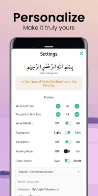 Mulakan perjalanan rohani anda dengan sumber Islam yang komprehensif ini, direka khas untuk mendekatkan anda kepada Al-Quran dan ajaran suci. Aplikasi ini menyajikan Kitab Suci Al-Quran dengan terjemahan dalam pelbagai bahasa, termasuk Bahasa Inggeris, membolehkan pemahaman yang mendalam bagi setiap Muslim. Nikmati ciri carian ayat yang pantas, kemampuan untuk berkongsi ayat beserta terjemahan, serta bacaan audio yang menenangkan untuk setiap ayat. Kami memastikan pengalaman membaca yang selesa untuk semua, dengan saiz fon boleh laras yang sesuai untuk warga emas, mod bacaan bebas gangguan, dan Mod Gelap untuk penglihatan yang optimum pada waktu malam. Selain itu, anda boleh menandai ayat kegemaran dan menyambung bacaan dari tempat terakhir yang ditandakan, semuanya diatur dengan jelas mengikut bahagian (Juz).