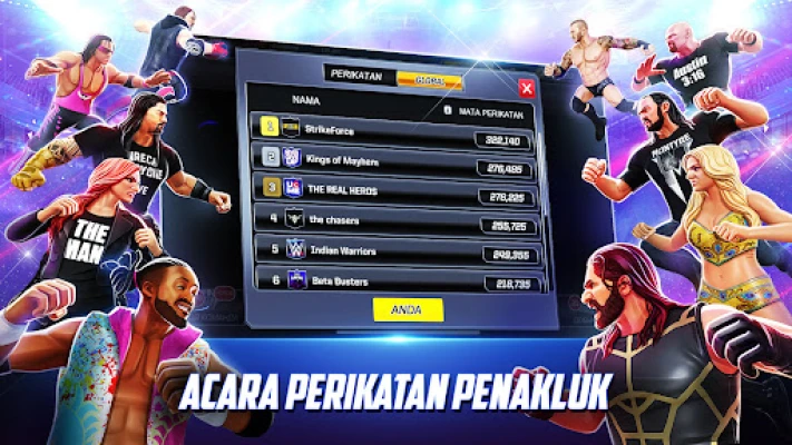 Selami dunia penuh adrenalin dan aksi WWE yang mendebarkan dengan WWE Mayhem! Rasai gelora arena pertarungan di hujung jari anda, di mana setiap tumbukan dan gerakan penamat membawa anda lebih dekat kepada kegemilangan. Pimpin barisan bintang seperti John Cena, The Rock, Becky Lynch, dan ikon-ikon WWE lain yang tak terhitung jumlahnya dalam pengalaman aksi arked yang tiada tandingan ini. Saksikan setiap Superstar dan Lagenda dipersembahkan dengan gaya visual yang unik dan menakjubkan, menghidupkan setiap pertarungan. Bangunkan laluan anda menuju Wrestlemania, menakluki cabaran mingguan di RAW, NXT, dan SmackDown Live, untuk mengukir nama anda sebagai juara terunggul dalam alam semesta WWE.